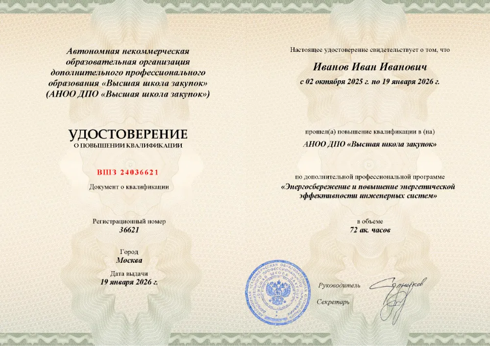Программа повышения квалификации (72 часа) по энергосбережению и повышению эффективности инженерных систем в в Омске. Освойте современные методы аудита, энергоменеджмент, инструменты оптимизации и цифровые технологии для снижения затрат в зданиях и на предприятиях.