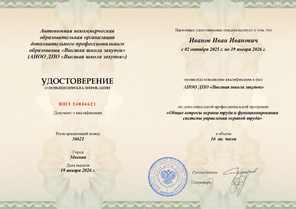 Повышение квалификации, 16 академических часов, 4 модуля: правовые основы и организация системы охраны труда, управление профессиональными рисками и оценка условий труда, обеспечение безопасных условий и социальные гарантии работникам, расследование несчастных случаев и внутренний аудит системы. Онлайн-обучение в в Омске с итоговой аттестацией.